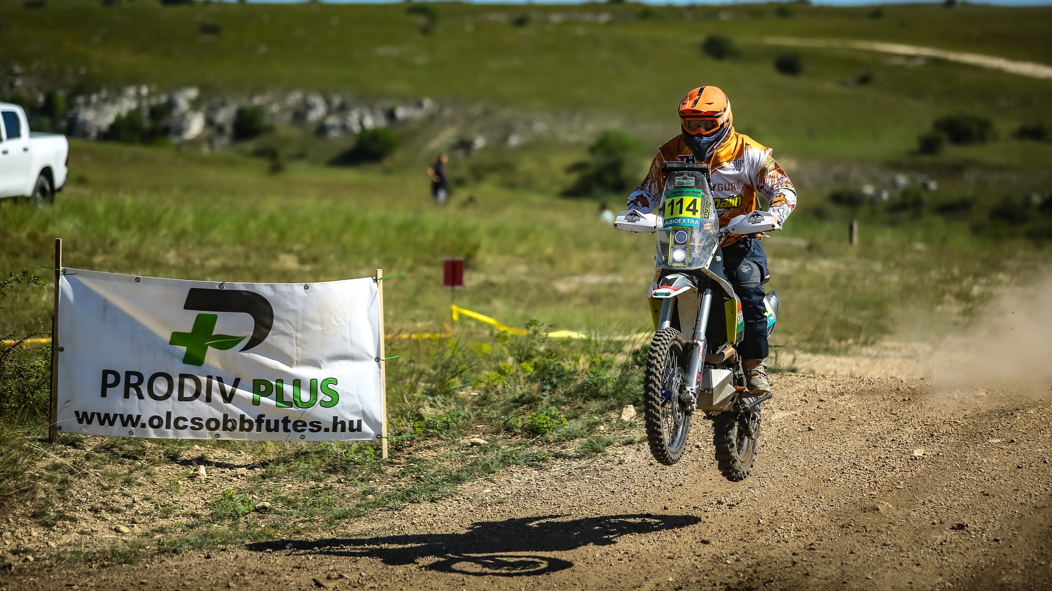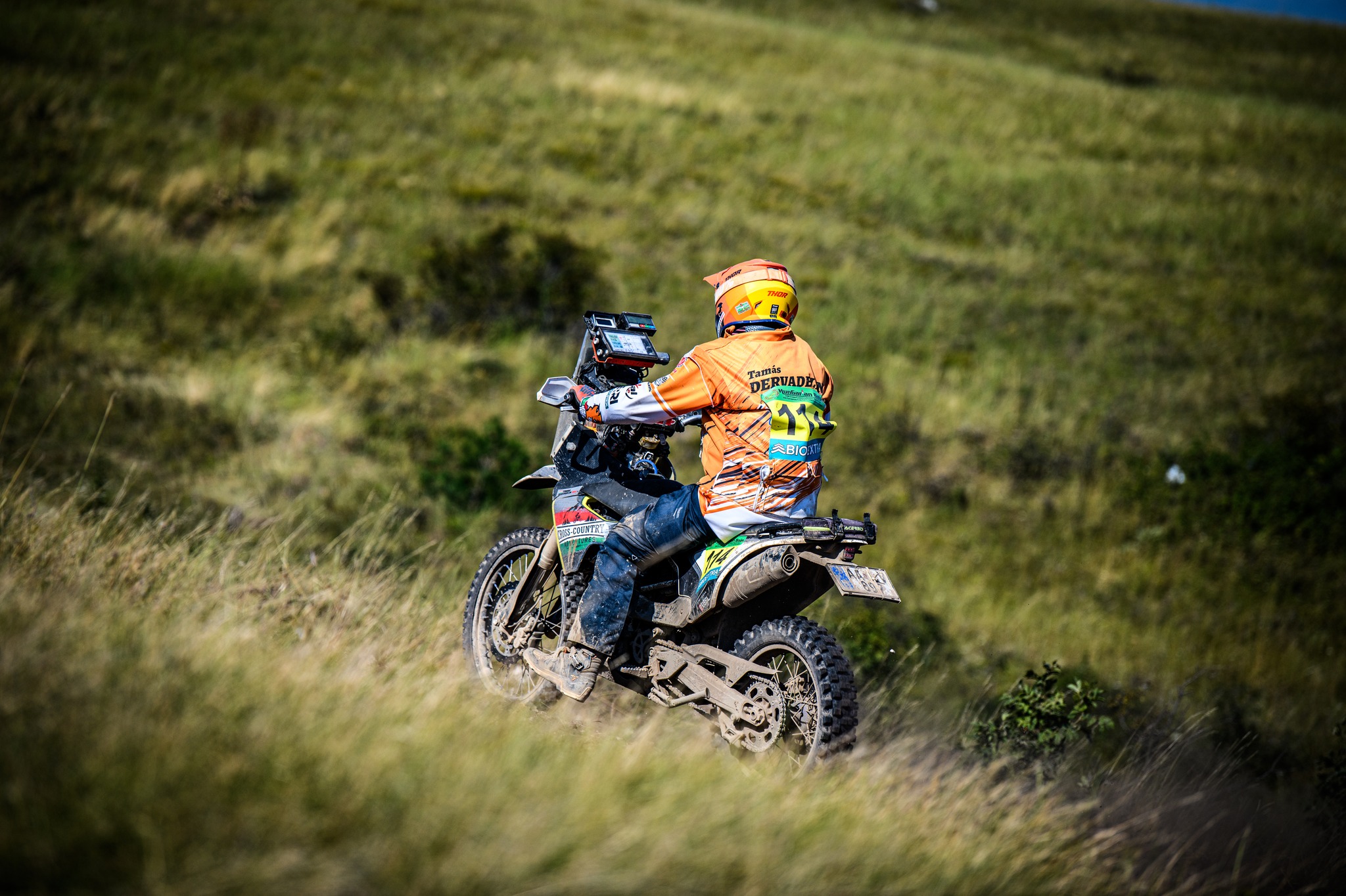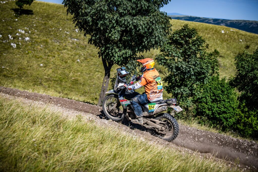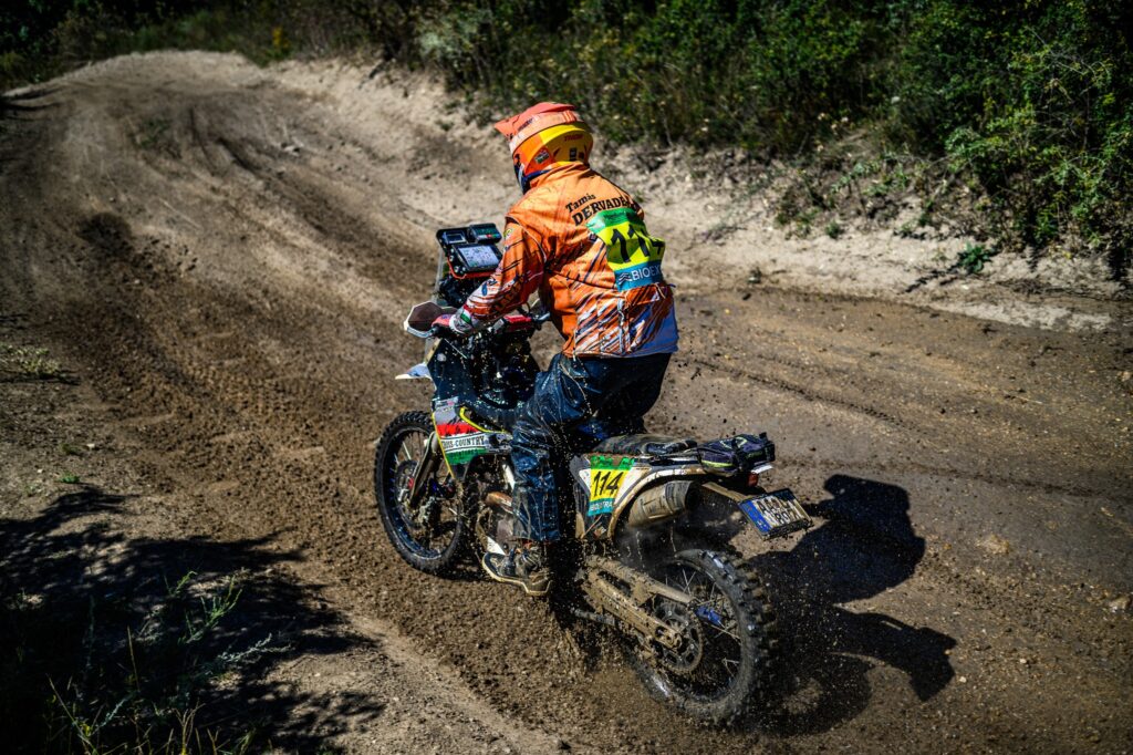 A második szelektív ugyanazon a nyomvonalon ment, mint az első, de az autók azért kicsit átalakítják néhol a terepet. Mindenesetre sokkal jobban indult számomra ez a rész. Sokkal jobban elkaptam a ritmust és nyilván az ismerős részeket is magabiztosabban küzdöttem le! Ugyanakkor a nap vége felé az alacsony szögben sütő nap a látást néhol eléggé lekorlátozta, így sokszor erősen lehajtott fejjel, a sisak sildjével próbáltam árnyékolni a szememnek. Mindenesetre a pálya végére rendesen elfáradtam, de jóleső érzés volt. A nap végére még maradt egy hátsó gumicserém, mivel a fent lévő Michelin Enduro Medium nem tűnt túl jó választásnak erre a talajtípusra. Nagyon csúszkált a hátulja és a kopás mértéke is nagyobb volt, mint amit én számítottam. Szerencsére Robert Bodor-ék (Slovak 4 Rally Team) kisegítettek egy Michelin Tracker hátsóval, amit innen is hálásan köszönök!