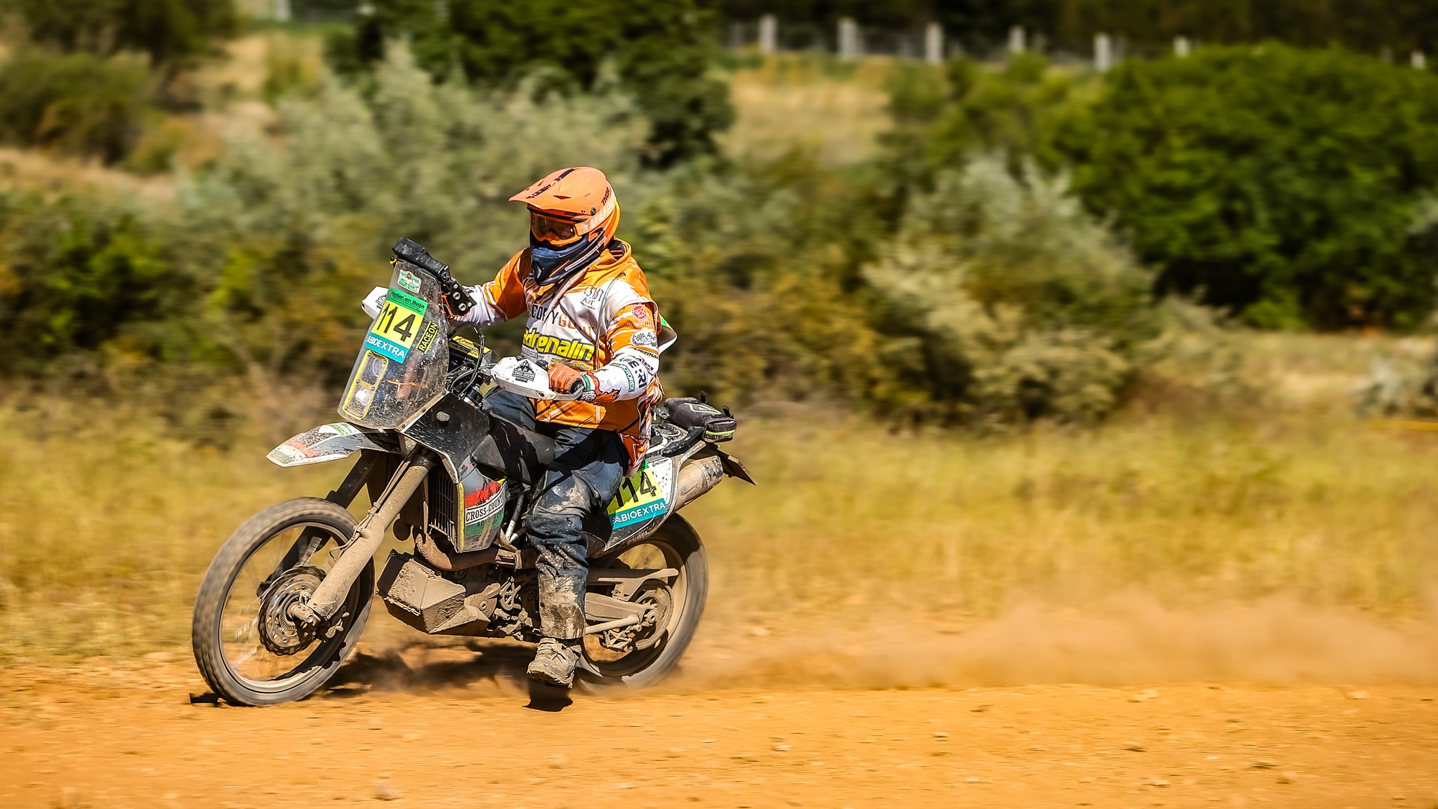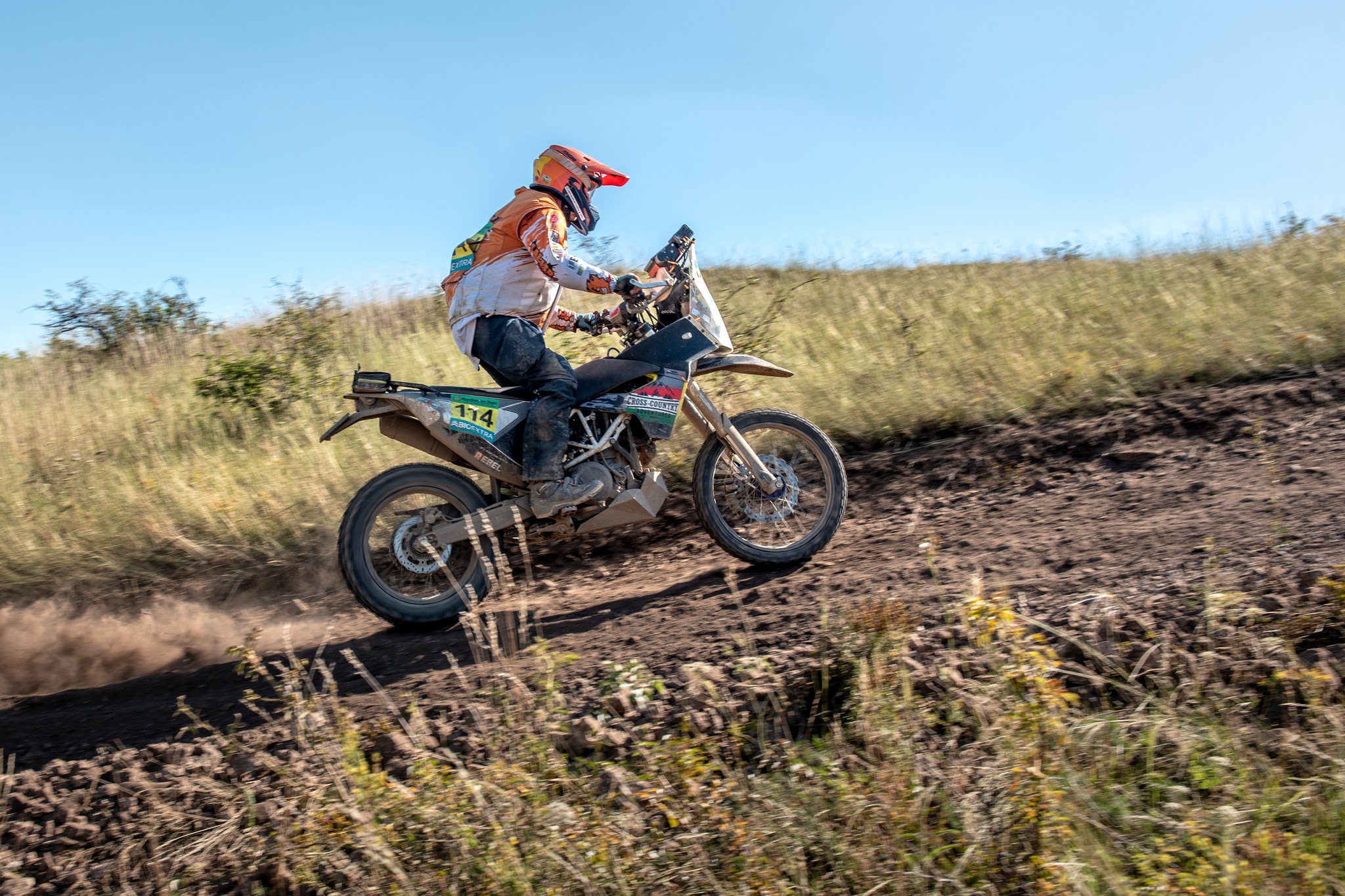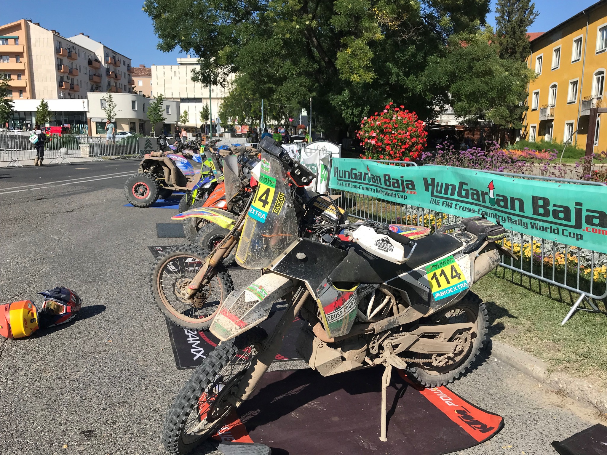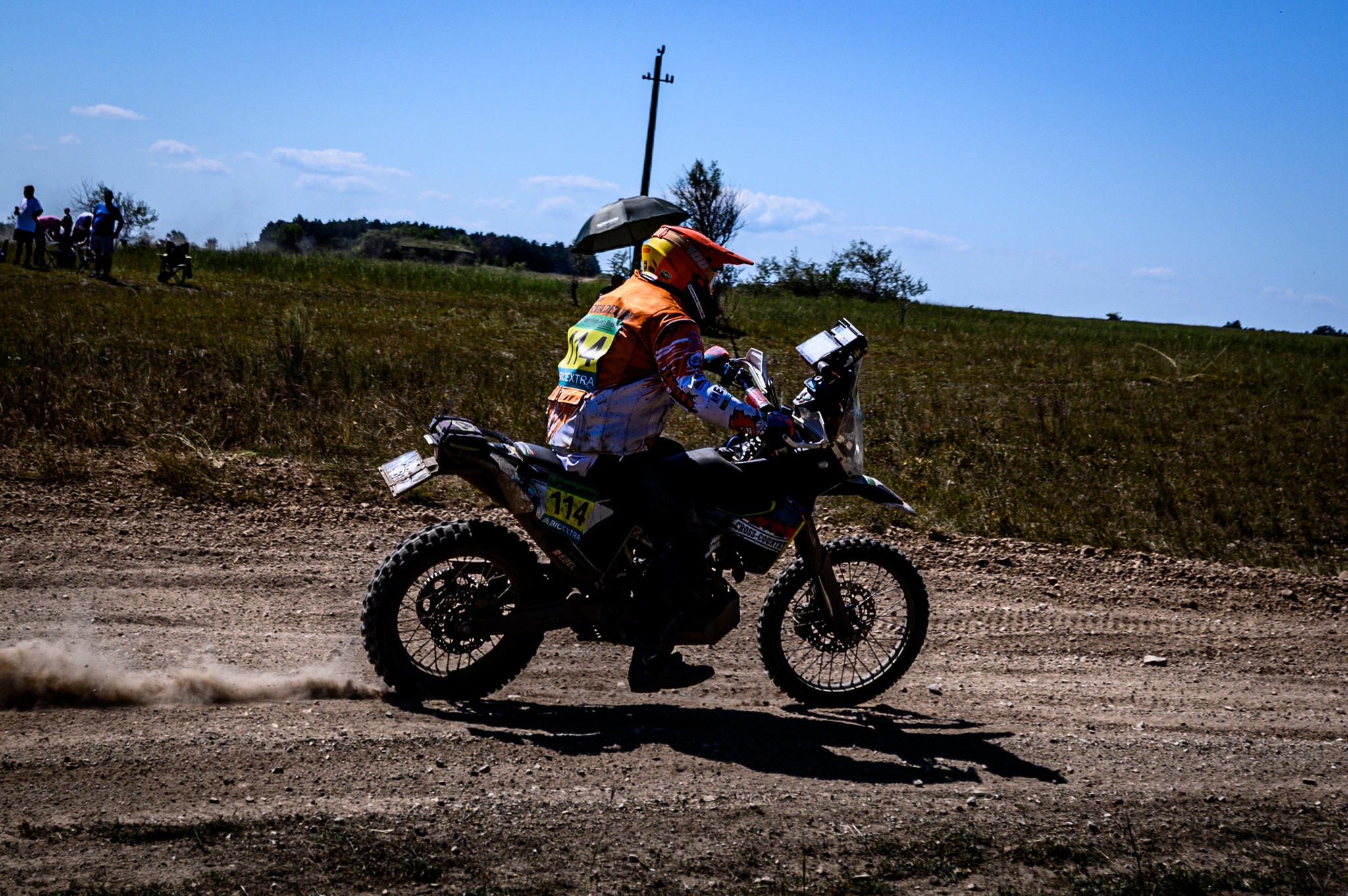 A második szelektív ugyanazon a nyomvonalon ment, mint az első, de az autók azért kicsit átalakítják néhol a terepet. Mindenesetre sokkal jobban indult számomra ez a rész. Sokkal jobban elkaptam a ritmust és nyilván az ismerős részeket is magabiztosabban küzdöttem le! Ugyanakkor a nap vége felé az alacsony szögben sütő nap a látást néhol eléggé lekorlátozta, így sokszor erősen lehajtott fejjel, a sisak sildjével próbáltam árnyékolni a szememnek. Mindenesetre a pálya végére rendesen elfáradtam, de jóleső érzés volt. A nap végére még maradt egy hátsó gumicserém, mivel a fent lévő Michelin Enduro Medium nem tűnt túl jó választásnak erre a talajtípusra. Nagyon csúszkált a hátulja és a kopás mértéke is nagyobb volt, mint amit én számítottam. Szerencsére Robert Bodor-ék (Slovak 4 Rally Team) kisegítettek egy Michelin Tracker hátsóval, amit innen is hálásan köszönök!