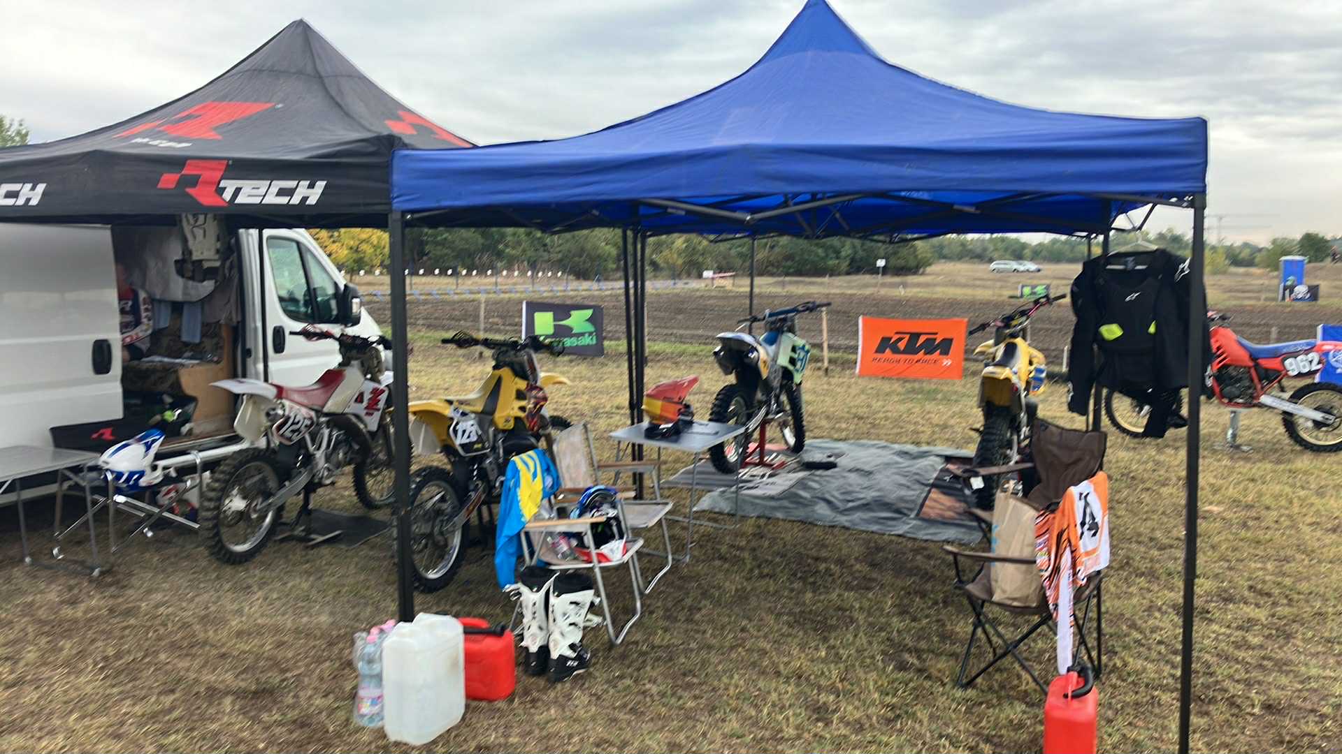 A kipakolás és a regisztrációt követően megkezdődtek a szabadedzések. No, itt kiderült, hogy azért mutatott új arcot a pálya számomra! Például a tavaszi versenyen kettesével, könnyedén megugrott 4-es kisugrók most nagyon máshogy néztek ki, mint az emlékeimben volt. Legalább 3-4 kört hezitáltam, hogy bepróbáljam, aztán rászántam magam. Ugyan sikerült megugranom, de a második ugrásnál inkább utaztam csak a motoron, mint vezettem volna! Nem volt jó érzés! Beszéltük a többiekkel utána, hogy valahogy másképp van megtúrva a pálya ezen része. Ráadásul a kissé sárosabb, csúszósabb rész nem is engedte meg a pontos rágyorsítást…legalábbi az én jelenlegi tudásommal. Ugyanakkor a cél utáni második nagy ugratóban láttam a lehetőséget, hogy megugorjam!